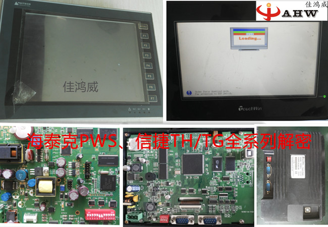 佳鸿威提供海泰克PWS系列解密码及信捷TH/TG全系列触摸屏解密部分型号需要拆机解密。全部数据的导出复制维修。在设备使用时常常碰到PLC/HMI被加密了或触摸屏修改参数损坏无法正常使用,这时就需要解密,佳鸿威利用相关技术手段对PLC密码进行读取或清除,从而达到破解之目的恢复设备的正常使用。